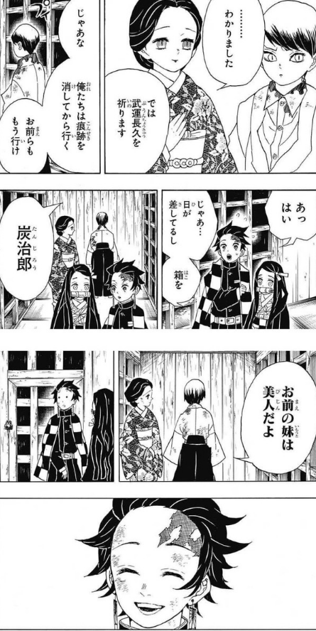 二巻の、炭治郎が鬼の手を握って、鬼が手を繋いだ思い出の中で死んでいったシーンは、とても好きです。