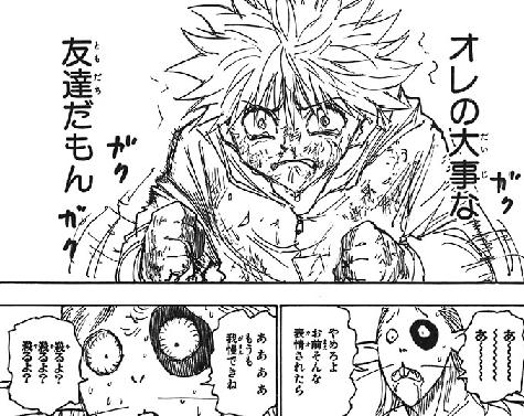 ゴンは単に愛されるだけのまぶしい奴だけどジンはまぶしくないからみんな言いたいこともヅケヅケ言えるし、叩きたくもなるみたいな。