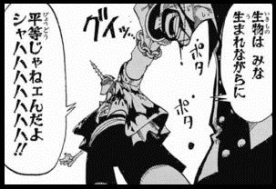 あたかも〝 見ろ見ろ!パクリだろ? 〟と言わンばかりにドヤ顔で貼り付けた汚駄信者の頭の悪い知ッたかぶり画像だ。コイツが唯一貼れた画像は後にも先にもこの1枚しかない。散々パクリ漫画と言われたが比較画像はコレだけしかない。百歩譲ッてコレをパクリと認めてあげてもコイツがパクリだと思ッたのは僅かコレッぽッちしかないとゆうわけだ。そして汚駄の膨大なパクリは無視。