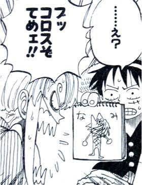 最初の方でルフィが魚人の想像図描いてそれに髪生やしてナミって描いてた