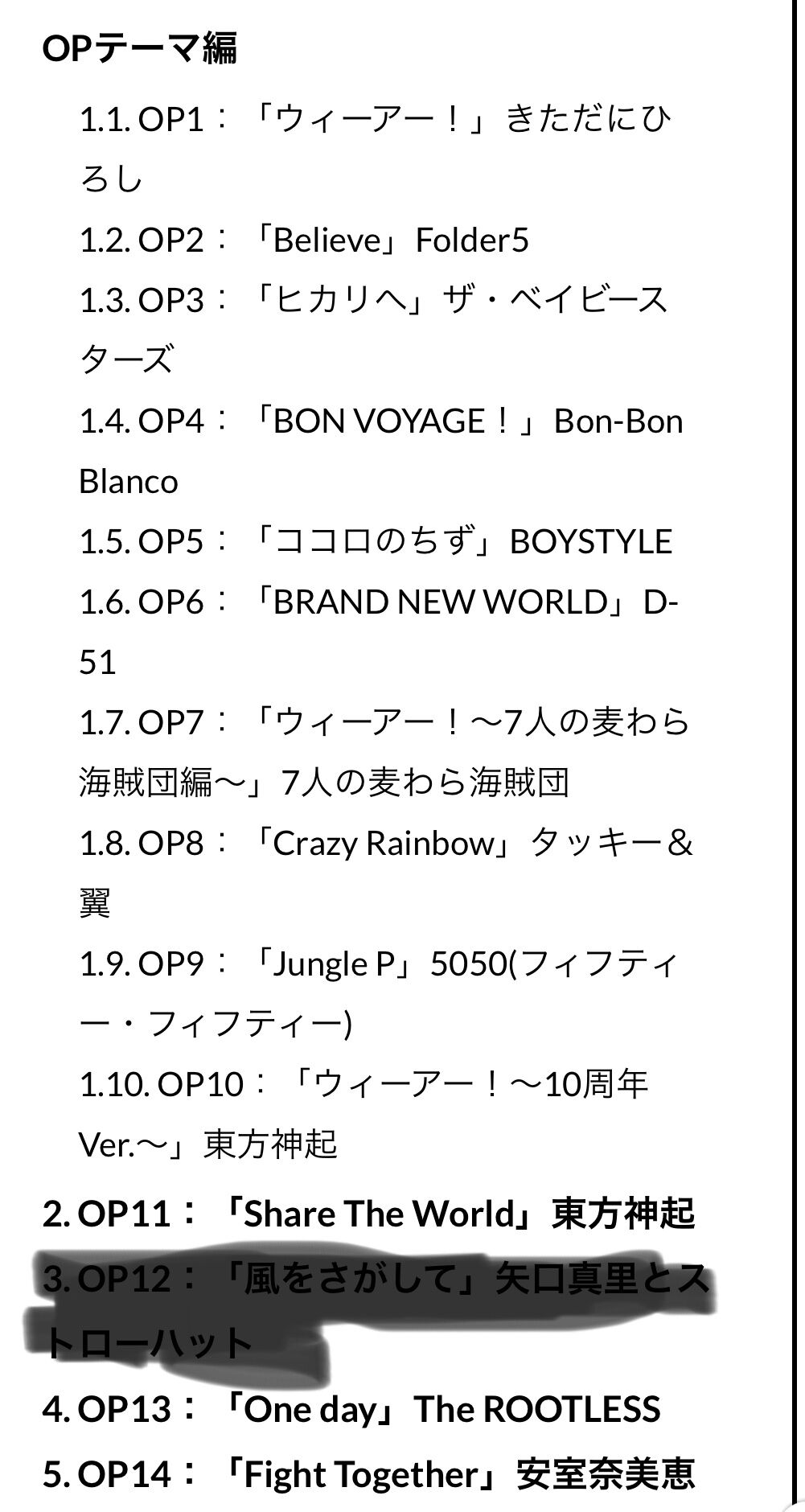 もうおっさんおばさんだし歌も微妙なんで二度とワンピースの主題歌歌わないで欲しいっす