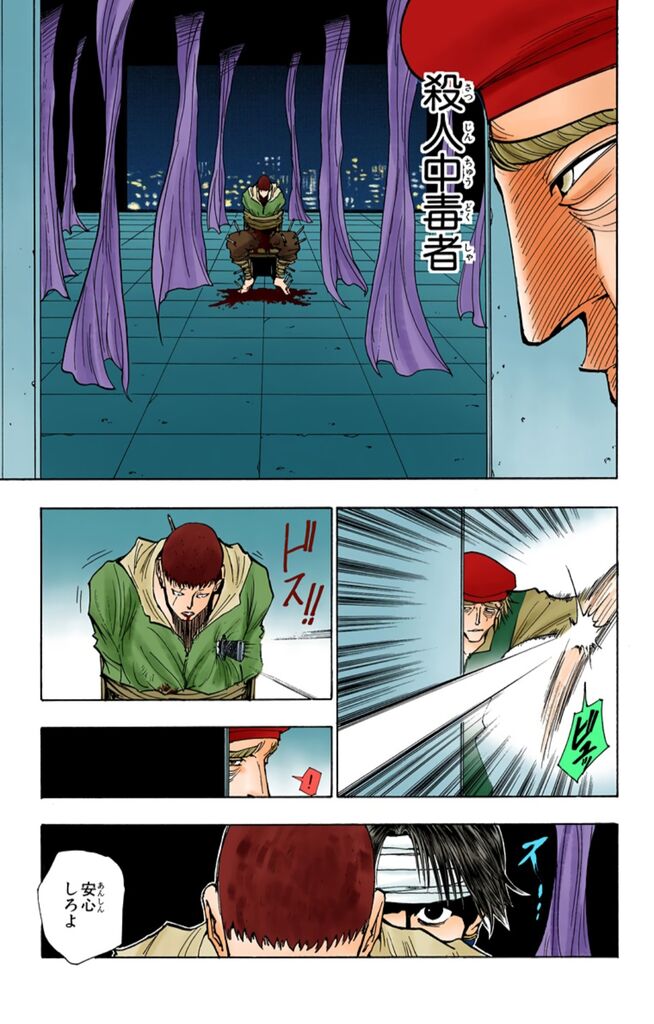 クロロが誘い込んだ時に椅子に座らされてたヤツがいたけど団長の手刀を見逃さなかった人の隣の人じゃなかったか?
