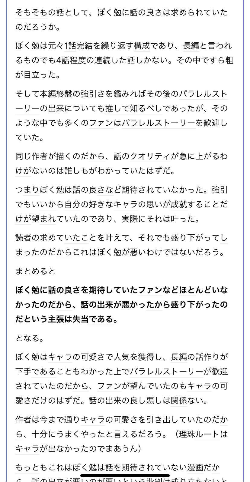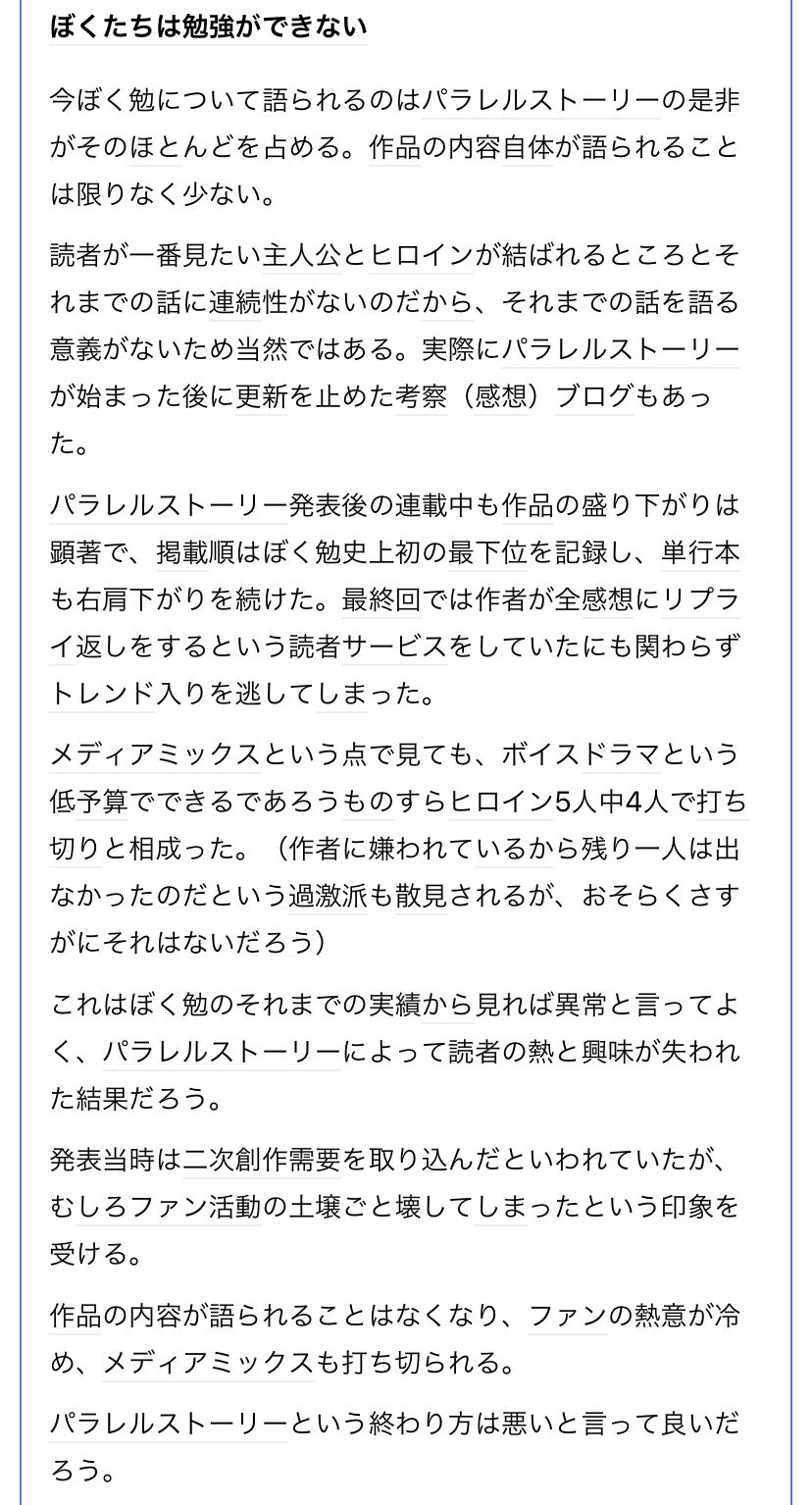 >ぼく勉に話の良さを期待していたファンなどほとんどいなかったのだから、話の出来が悪かったから盛り下がったのだという主張は失当である。