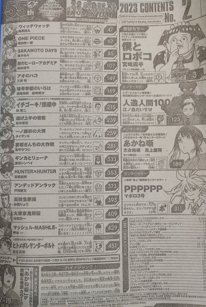 ◆ワンピース ◆食戟のソーマ ◆ニセコイ ◆磯部磯兵衛物語 ◆斉木楠雄のΨ難 ◆銀魂 ◆ハイキュー ◆トリコ ◆ワールドトリガー ◆こち亀 ◆BLEACH ◆火ノ丸相撲 ◆僕のヒーローアカデミア ◆鬼滅の刃 ◆ブラッククローバー ◆背すじをピン!と ◆左門くんはサモナー ◆ゆらぎ荘の幽奈さん ◆たくあんとバツの日常閻魔帳 ◆約束のネバーランド ◆ラブラッシュ! ◆レッドスプライト ◆HUNTER×HUNTER ◆ドラゴンボール ◆ジョジョの奇妙な冒険 ◆ナルト ◆SOUL CATCHER(S) ◆読み切り ◆ジャンプ掲載順 ◆スレッド一覧