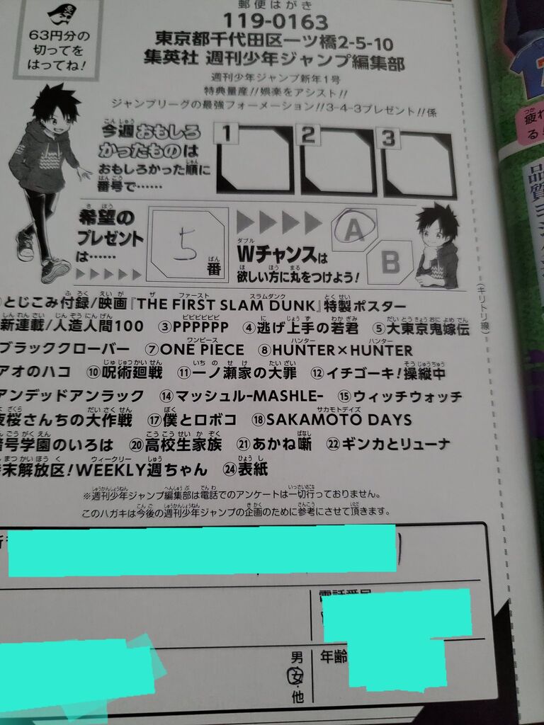 ◆ワンピース ◆食戟のソーマ ◆ニセコイ ◆磯部磯兵衛物語 ◆斉木楠雄のΨ難 ◆銀魂 ◆ハイキュー ◆トリコ ◆ワールドトリガー ◆こち亀 ◆BLEACH ◆火ノ丸相撲 ◆僕のヒーローアカデミア ◆鬼滅の刃 ◆ブラッククローバー ◆背すじをピン!と ◆左門くんはサモナー ◆ゆらぎ荘の幽奈さん ◆たくあんとバツの日常閻魔帳 ◆約束のネバーランド ◆ラブラッシュ! ◆レッドスプライト ◆HUNTER×HUNTER ◆ドラゴンボール ◆ジョジョの奇妙な冒険 ◆ナルト ◆SOUL CATCHER(S) ◆読み切り ◆ジャンプ掲載順 ◆スレッド一覧