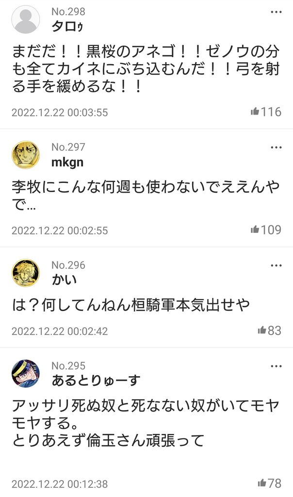 今週カンキ軍が「李牧ゥ!」言ってるの少し笑ってもうた