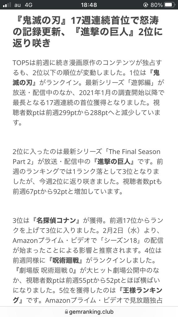 鬼滅の無限列車も呪術0もランク1位しばらく入ってたのに