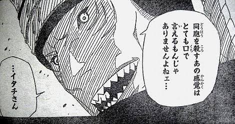 同じ仲間殺しの任務を負ってたザブザが仲間殺しを半ば楽しんでたのに対して鬼鮫は上層部に激怒しながら現実逃避してたからな