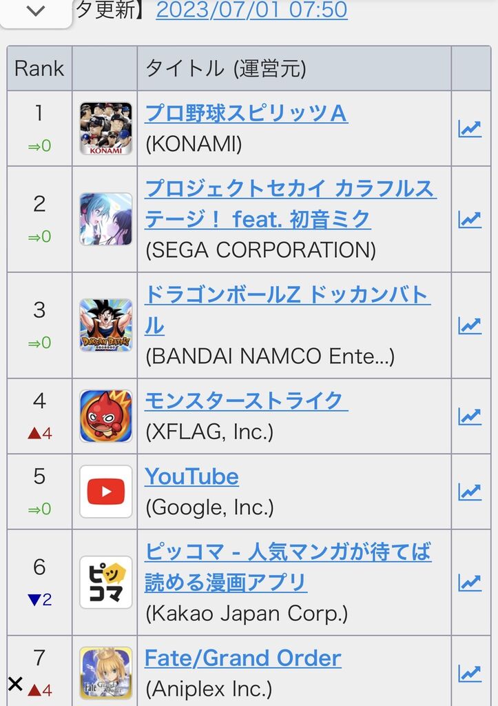 ちなみに同日更新のドッカンは1位です…