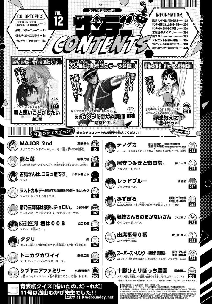 ウィッチ・あかね・サカモトくらいしか読んでないな 他週刊3誌のが読める作品多いわ