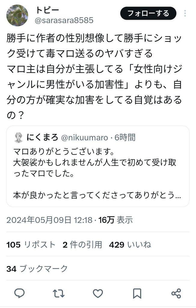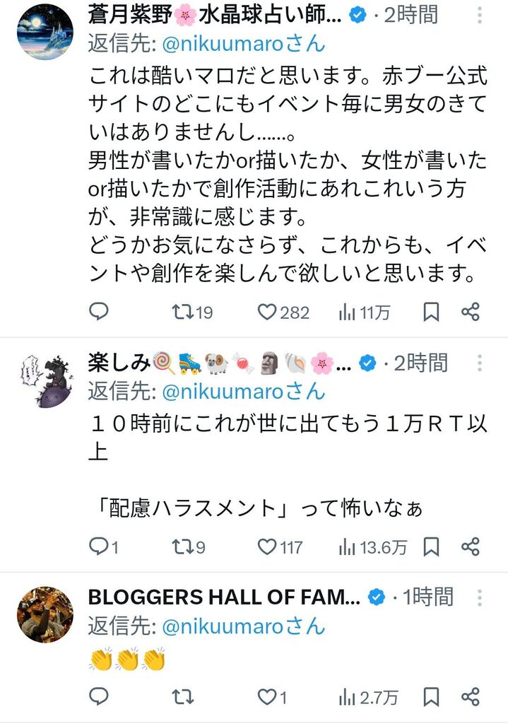 というかゲイがBL創作してるのに、女性に配慮しろとか滅茶苦茶過ぎだろ