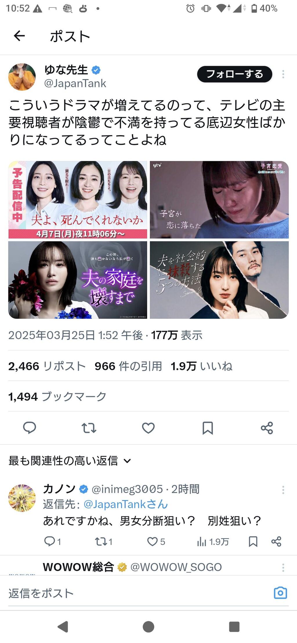 「この人を孕ませたい、俺の子供を産ませたい、俺のが恋をしたのは妻とは別の人」もドラマ化してやらないと不平等