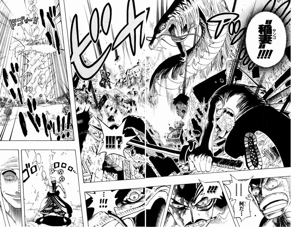輪郭の太さで書き分け出来てないから遠近感が分からん、奇形で巨人も多いしなおさら遠近感が分からん