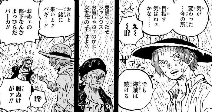 腕を失っても大らかに振る舞うシャンクスにルフィは憧れた。