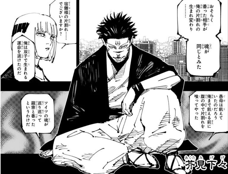 宿儺は母親の腹の中で片割れ食い尽くして最強の呪いになったんやろ、どっちも生きて産まれたらそうなってない